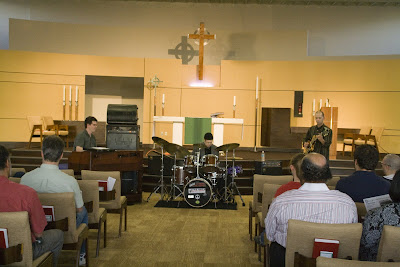Artworks by Mary Andersen filled our narthex space. They vineyard and lakeshore landscapes accompanied the mood set by the music!